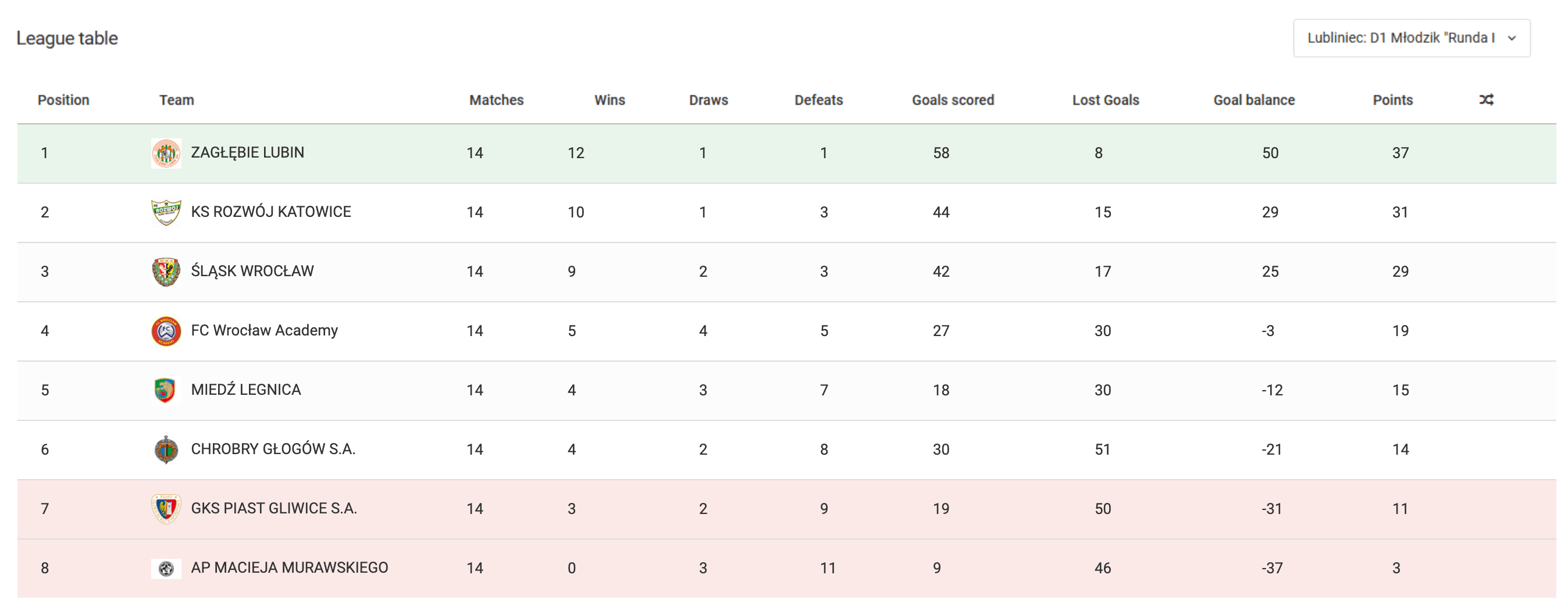 Com base nos parâmetros do jogo e nos resultados das partidas inseridos no sistema, uma tabela de classificação é gerada automaticamente para cada jogo.
